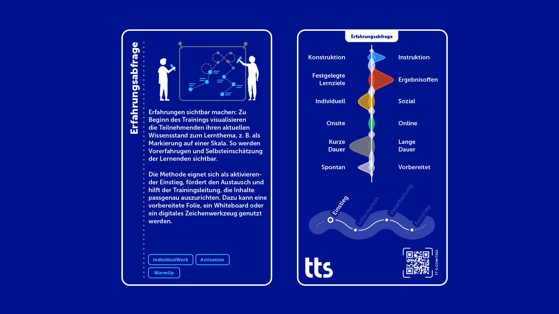 Erfahrungen sichtbar machen: Zu Beginn des Trainings visualisieren die Teilnehmenden ihren aktuellen Wissensstand zum Lernthema, z. B. als Markierung auf einer Skala. So werden Vorerfahrungen und Selbsteinschätzung der Lernenden sichtbar.