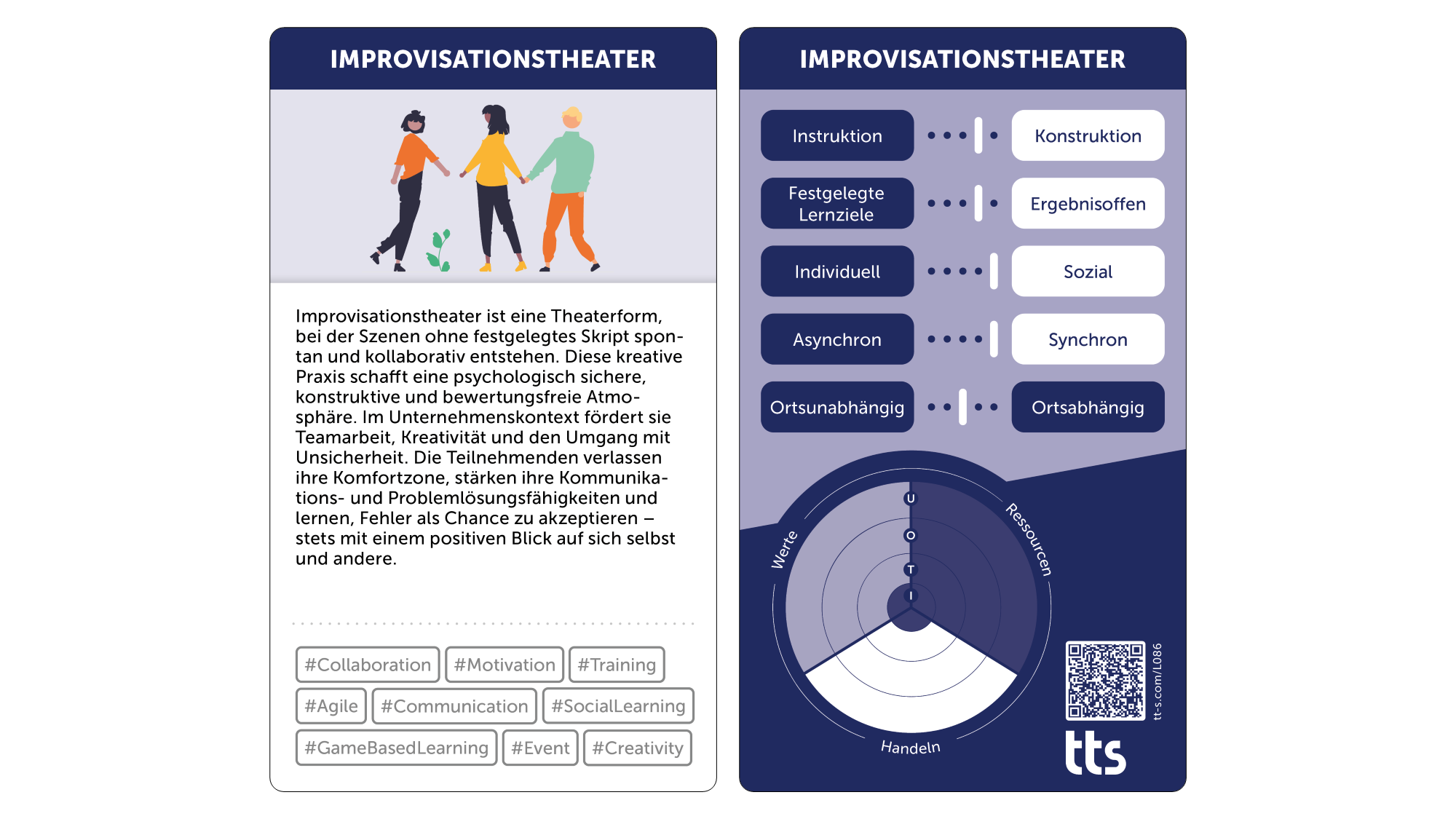 Diese kreative Praxis schafft eine psychologisch sichere, konstruktive und bewertungsfreie Atmosphäre. Im Unternehmenskontext fördert sie Teamarbeit, Kreativität und den Umgang mit Unsicherheit. Die Teilnehmenden verlassen ihre Komfortzone, stärken ihre Kommunikations- und Problemlösungsfähigkeiten und lernen, Fehler als Chance zu akzeptieren – stets mit einem positiven Blick auf sich selbst und andere.