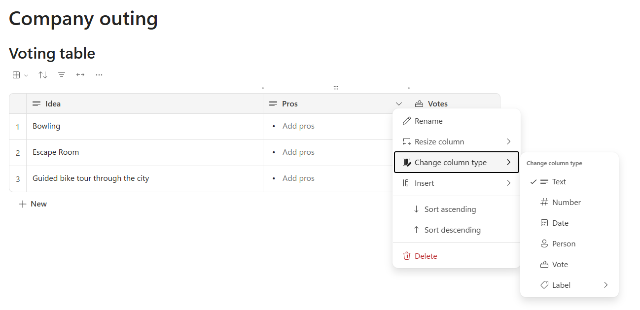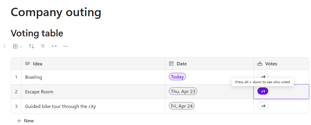 Loop voting tables are ideal for gathering feedback from your team quickly and transparently. They allow you to clearly present options and then evaluate them together—without the need for separate tools or cumbersome voting processes. You can see in real time as colleagues cast their votes, keeping track of all developments. Whether for feedback sessions, decision-making, or prioritization: voting tables help you proceed in a structured and efficient manner.